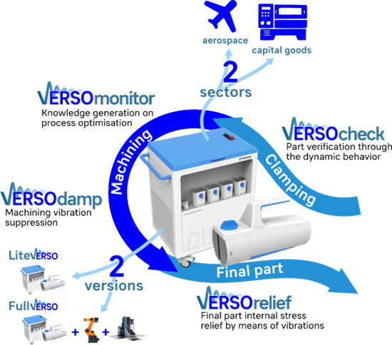 • Two or more VERSO devices are used simultaneously to address different workpiece flexible vibration modes.